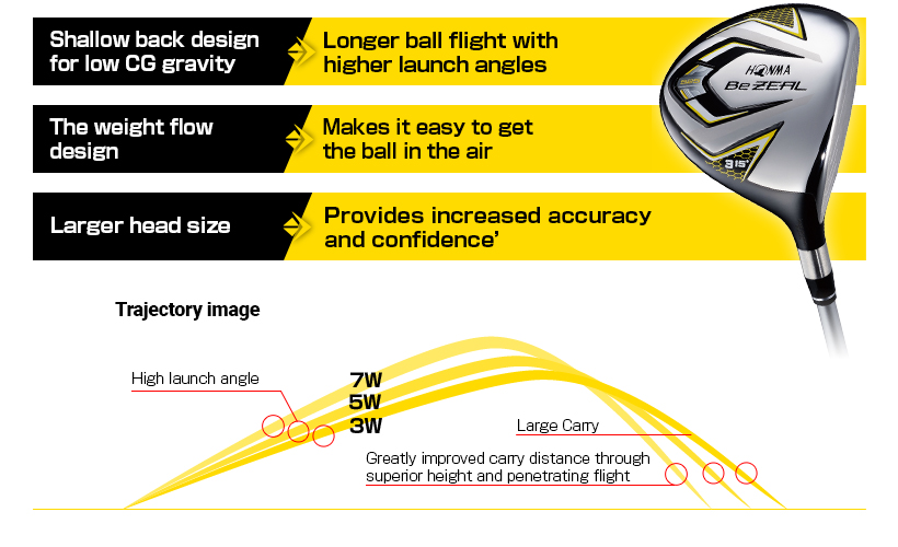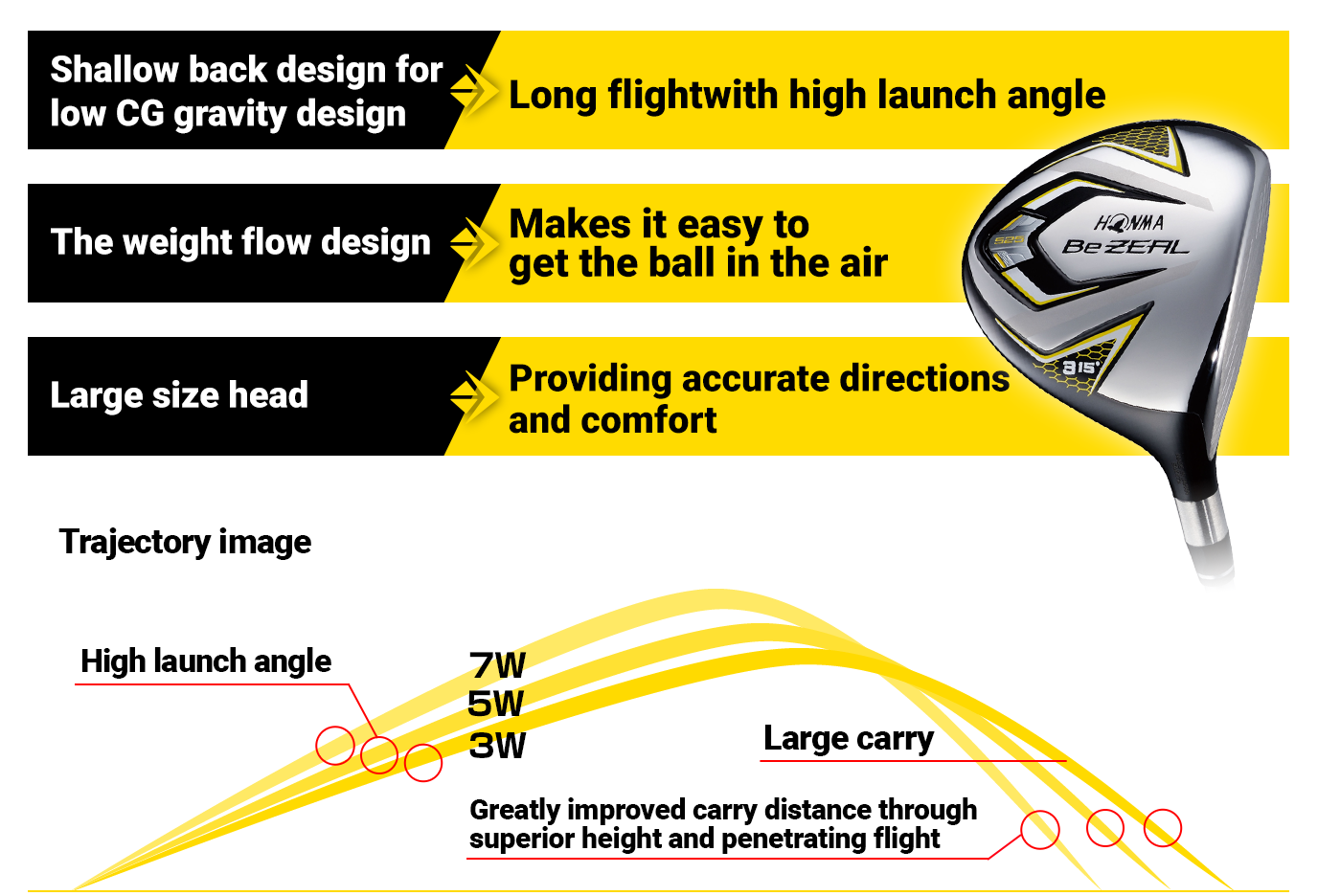 | Wood : | Grip‐oriented design for longer carry distance, which is easily achieved through a higher trajectory and reduced spin rate. |
